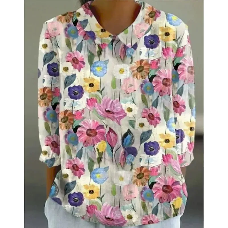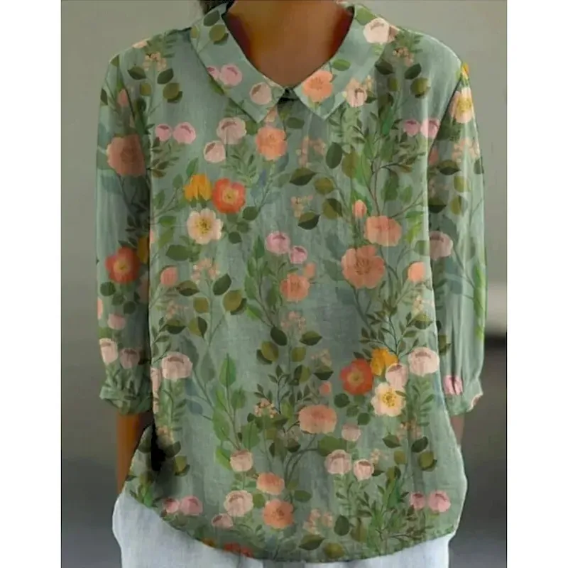 Womens-Blouse-Long-Sleeve-Peter-Pan-Collar-Casual-Floral-Bohemia-Daily-Stylish-Collar-Regular-Tops-Daily-Buttons-Print-Pink-Blue-Orange-Green-Khaki-S