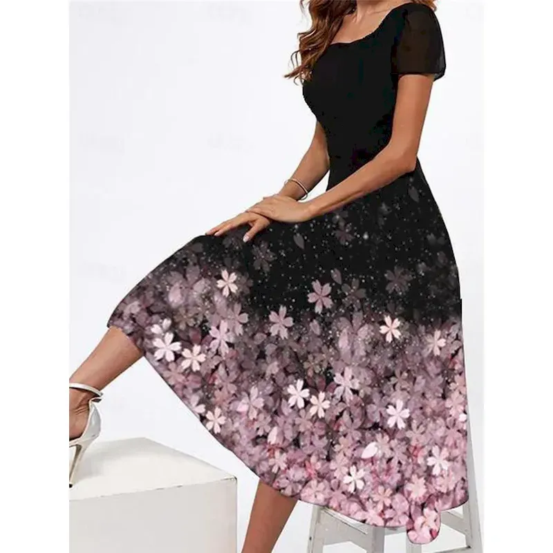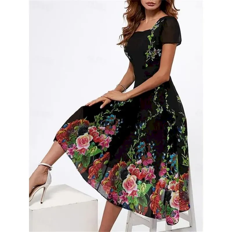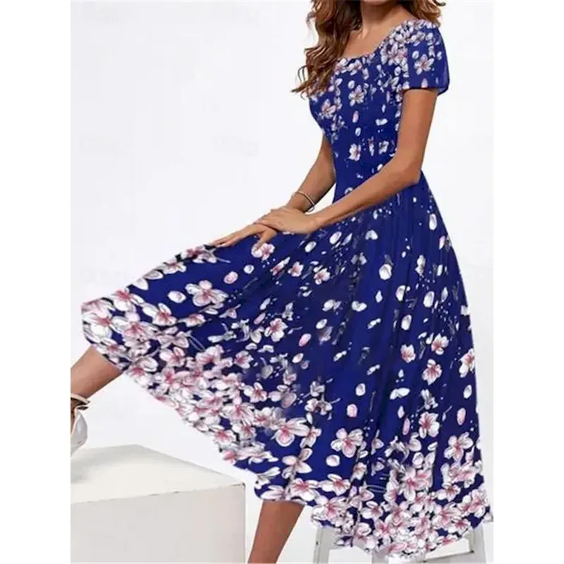 SKU: Womens-Casual-Dress-Floral-Print-Square-Neck-Midi-Dress-Vacation-Short-Sleeve-Summer-2025 Categories: , Tags: ,