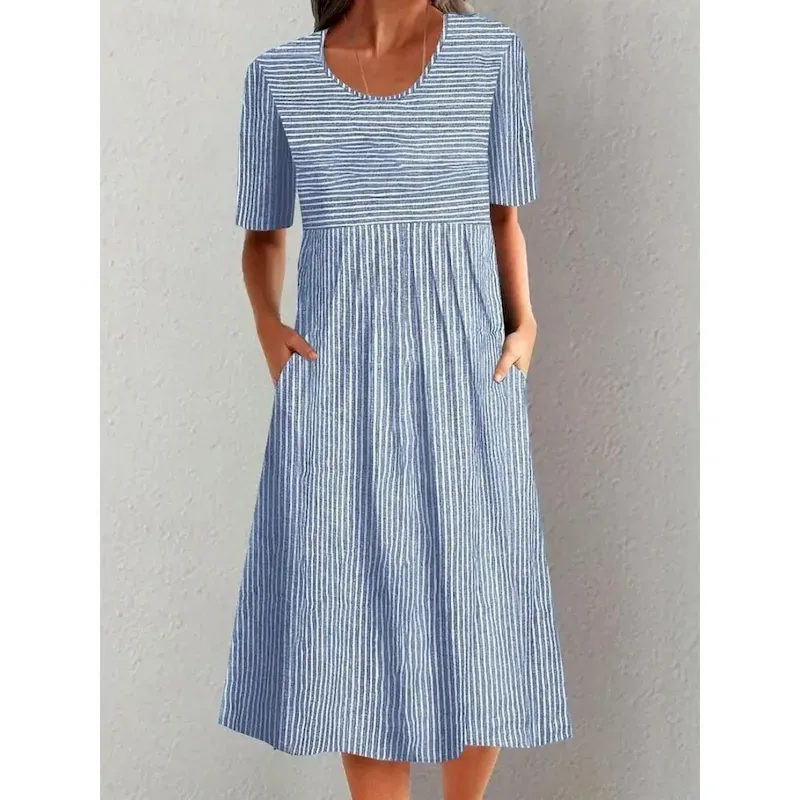 Women’s Jumper Dress Stripe Ruched Print Crew Neck Midi Dress Elegant Bohemia Home Daily Summer 2025