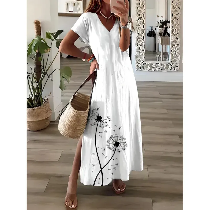 Women’s Maxi Dress Sundress A Line Dress Vacation Casual Beach Party Going out Regular Fit Floral Graphic Short Sleeve V Neck Light Pink White Pink Sp