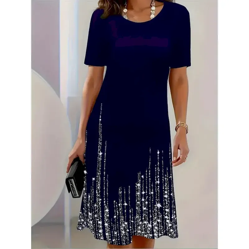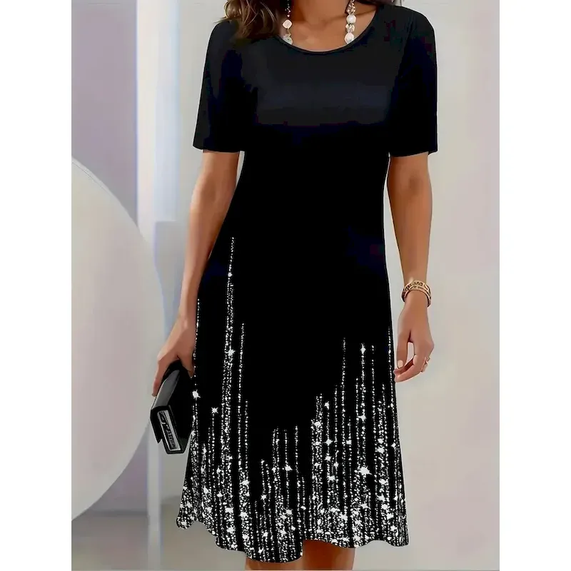Womens-Midi-Dress-Elegant-Party-Evening-Crew-Neck-Short-Sleeve-T-Shirt-Dress-Tee-Dress-Shift-Dress-Casual-Formal-Daily-Regular-Fit-Floral-Abstract-Sh