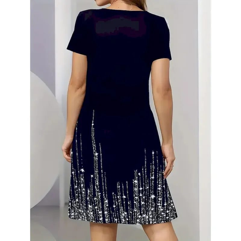 – Stunning print design– Elegant V neck neckline Specifications Dresses Type:A Line DressFabric:PolyesterGender:Women’sDesign:PrintOccasion:DailyStyle:Stylish,Vintage,ElegantFit Type:Regular FitDress Length Type:Mini DressNeckline:V NeckSleeve Length:Short