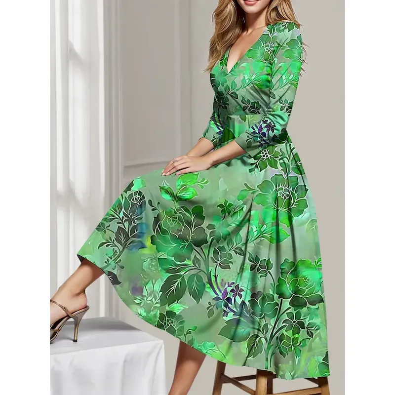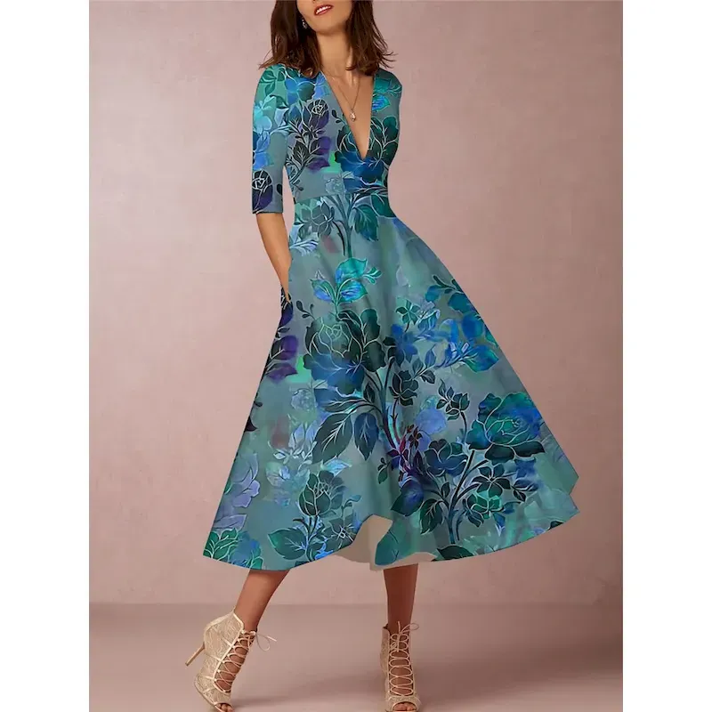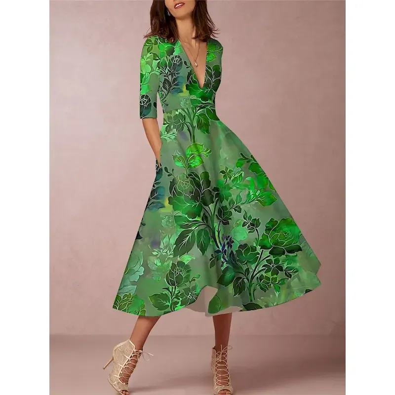 Women’s Midi Dress Party Dress Cocktail Dress Wedding Guest Dress Swing Dress Fashion Party Modern Formal Winter Dress Vacation Regular Fit Floral 3/4
