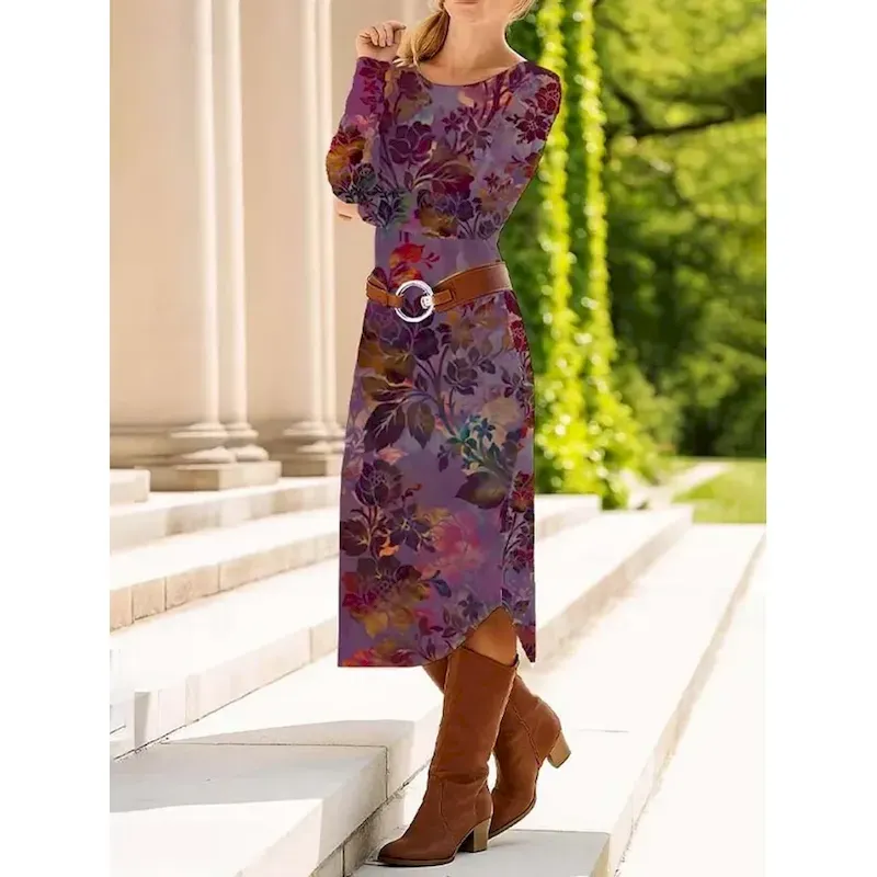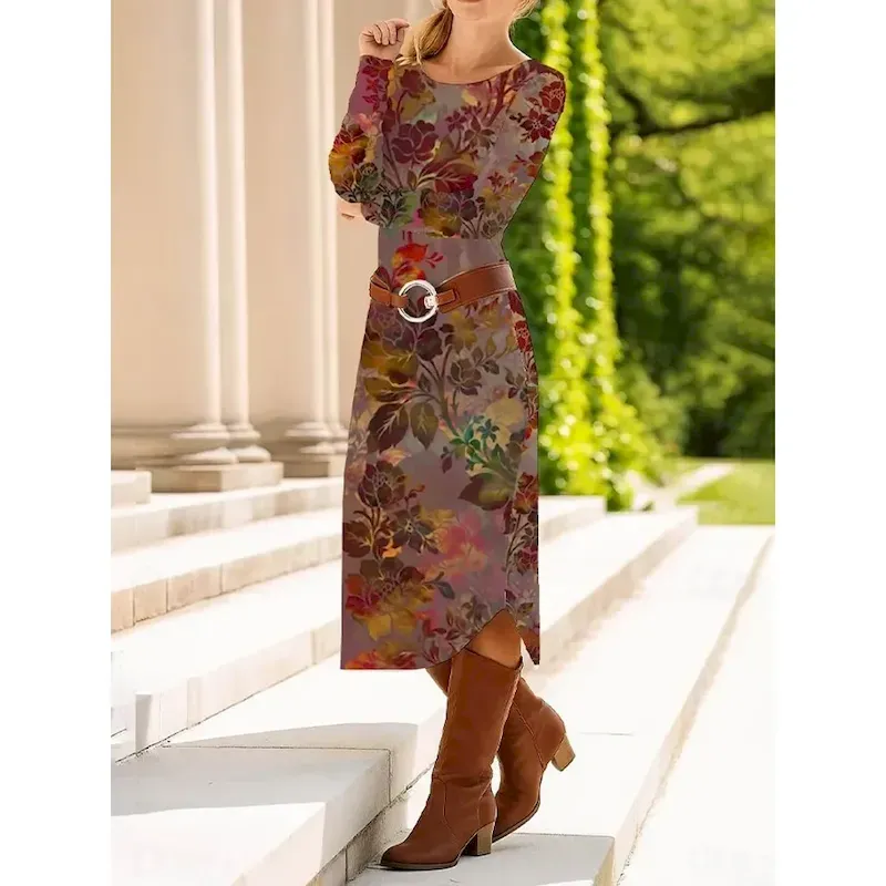 Womens-Midi-Dress-Sheath-Dress-Shift-Dress-Casual-Daily-Regular-Fit-Graphic-Paisley-Abstract-Long-Sleeve-Crew-Neck-Red-Blue-Purple-Green-Spring-Fall