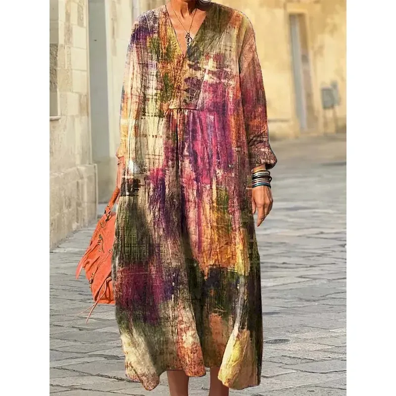 Women’s Midi Dress Sundress A Line Dress Vacation Casual Boho Going out Beach Loose Fit Graphic Geometric Long Sleeve V Neck Pink Blue Purple Green Sp