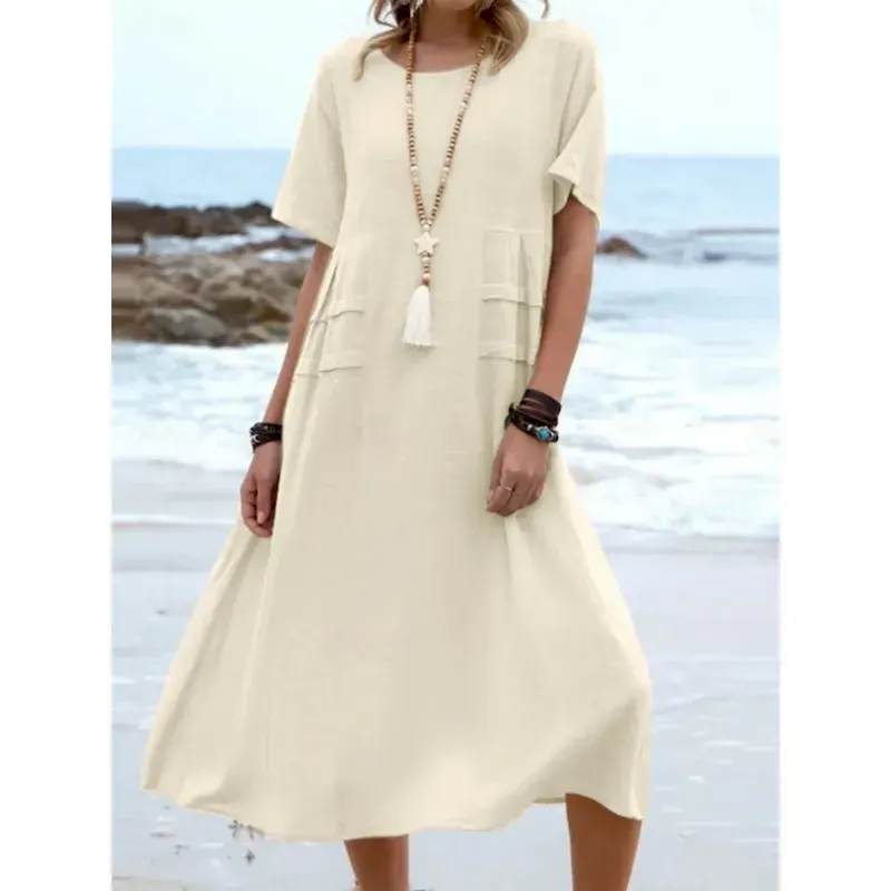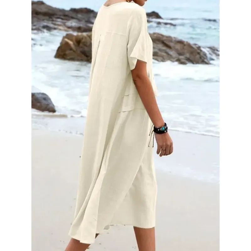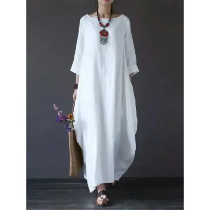 Women’s Black White Red Summer Spring Maxi Dress Linen-Inspired Dresses White Dress Cotton Linen Dress Casual Daily Weekend Loose Fit Plain Crew Neck