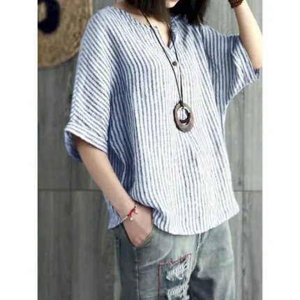 – Flattering V-neckline– Enhances neckline and collarbones– Versatile and stylish neckline Specifications Fabric:Cotton,Cotton LinenTops Type:Shirt,BlouseGender:Women’sDesign:ButtonsOccasion:Daily,HolidayStyle:Casual,Elegant,Vintage,StylishFit Type:Regular FitNeckline:V NeckSleeve Length:Short SleeveElasticity:Micro-elasticLook