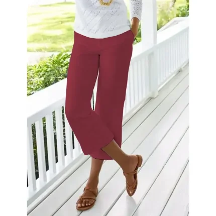 Women’s Cotton Linen Pants Chinos Capri shorts Fashion Calf-Length Plain Side Pockets Baggy Comfort Inelastic Casual Daily Black White Red Blue Regula