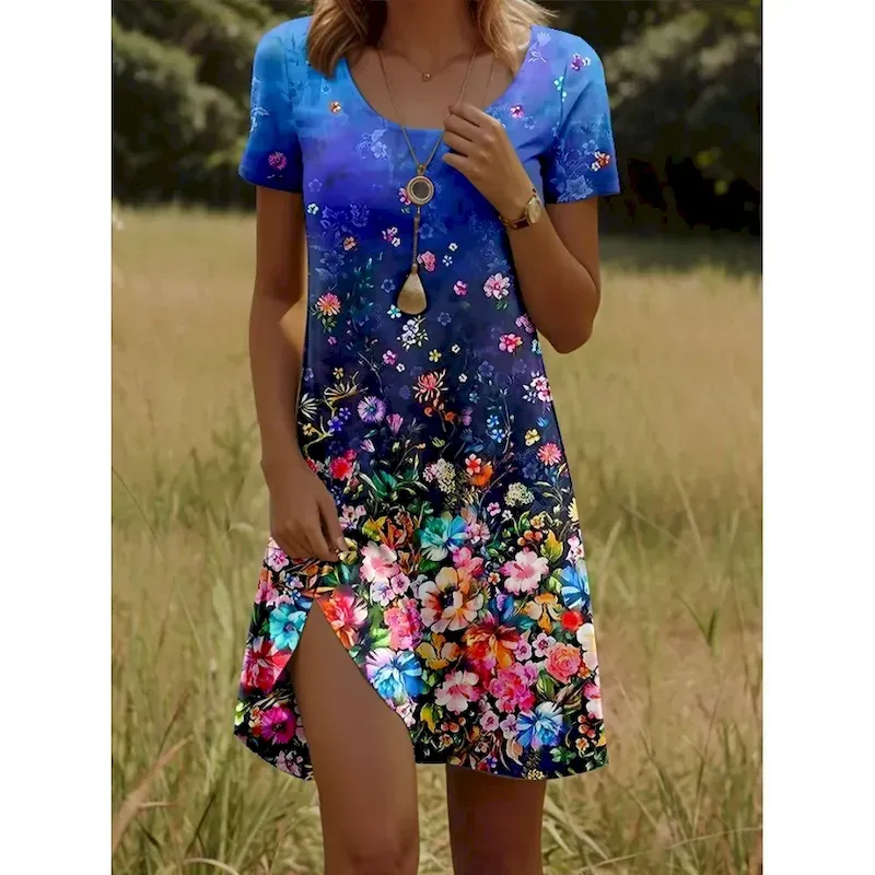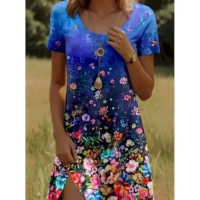 Women’s Midi Dress Elegant Party Evening Crew Neck Short Sleeve T Shirt Dress Tee Dress Shift Dress Casual Formal Daily Regular Fit Floral Abstract Sh