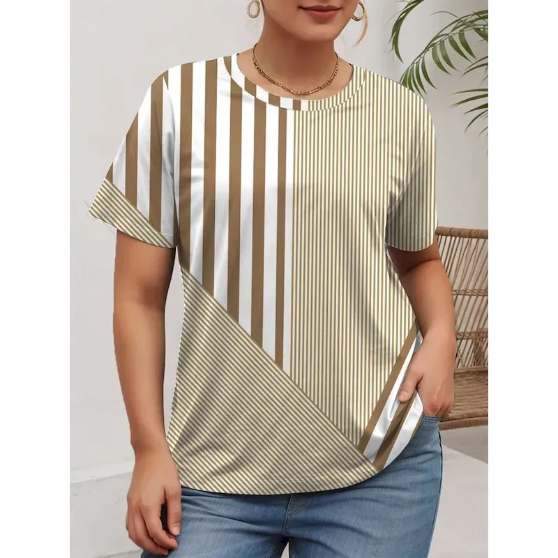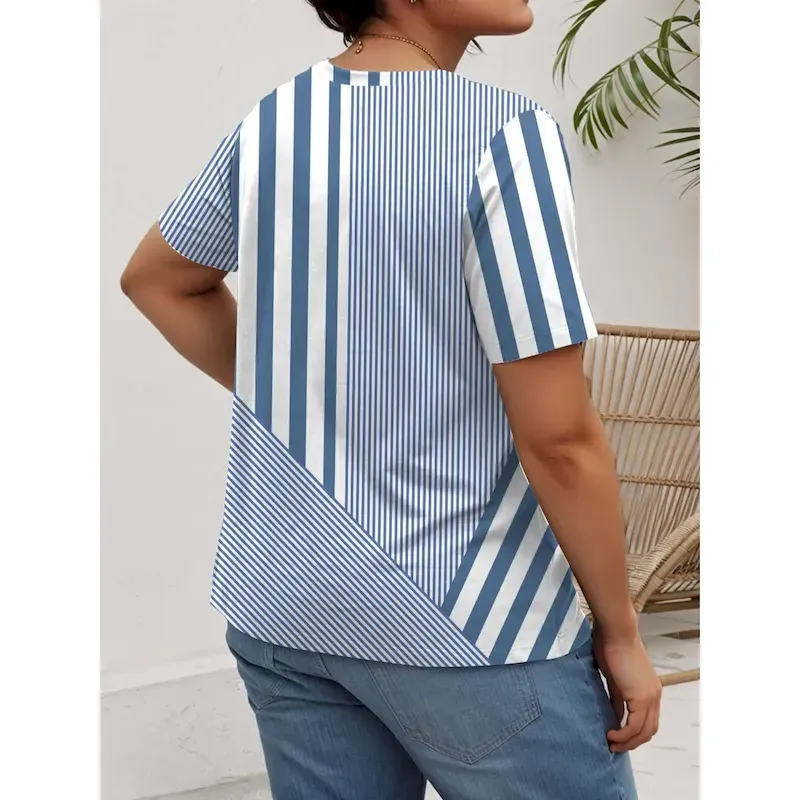 Womens-Plus-Size-Tops-T-Shirt-Graphic-Striped-Print-Short-Sleeve-Crew-Neck-Casual-Daily-Polyester-Summer-Pink-Blue-2025