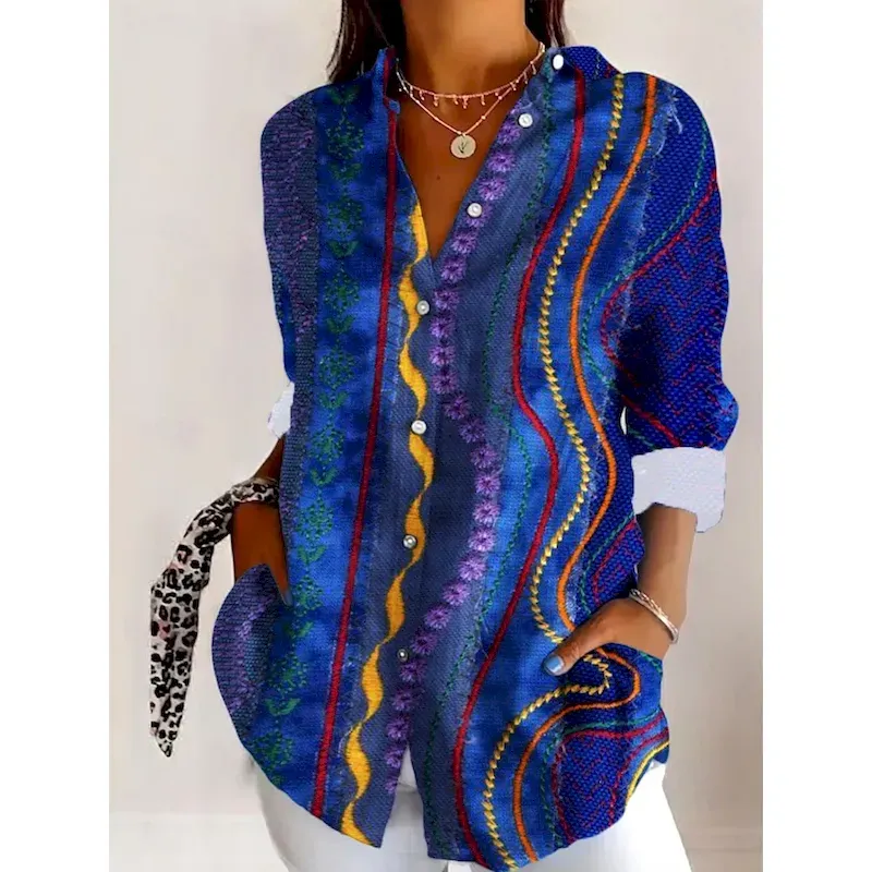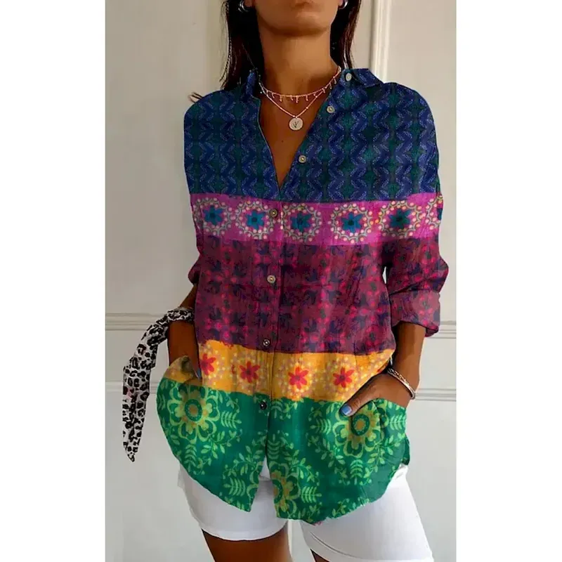 Womens-Shirt-Button-Down-Tunic-Shirt-Collar-Long-Sleeve-Graphic-Geometric-Casual-Regular-Tops-Work-Daily-s-Print-Blue-Purple-Fuchsia-Green-Spring-Fal