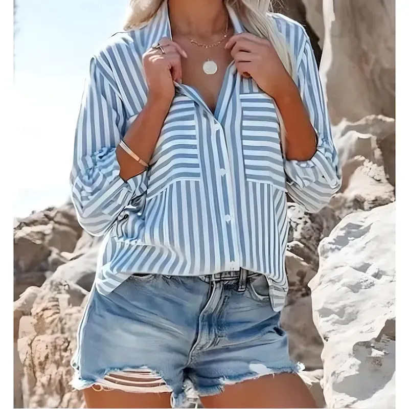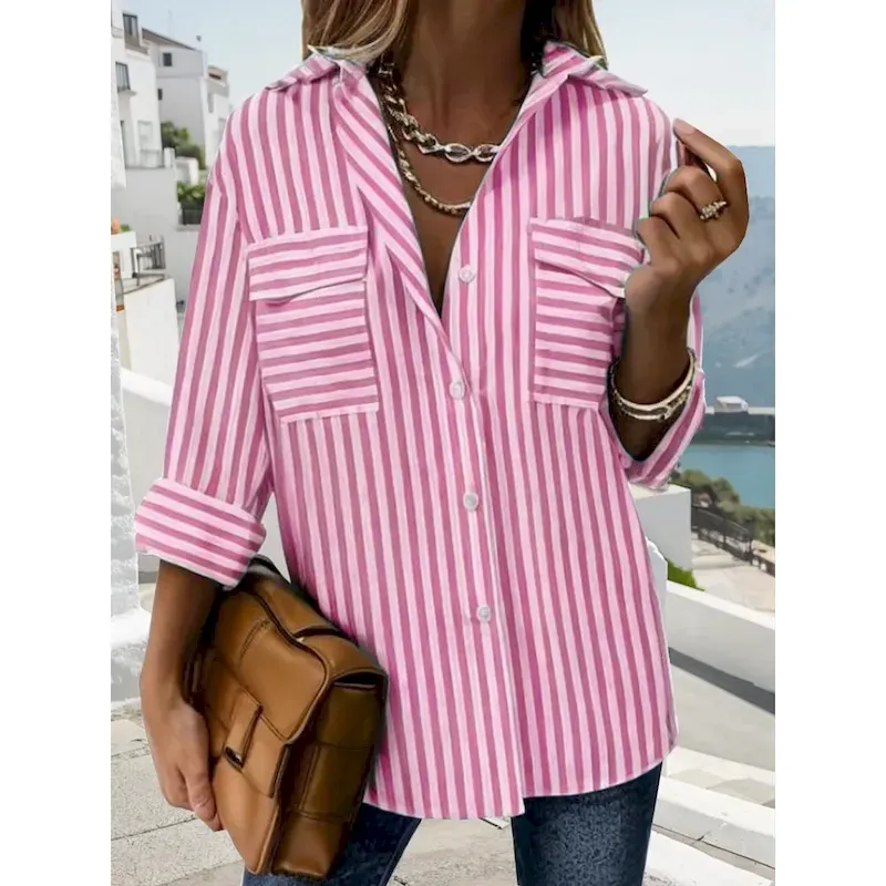 Womens-Shirt-Long-Sleeve-Button-Down-Blouse-BGeometric-Striped-Vintage-Tropical-Stylish-Shirt-Collar-Regular-Tops-Work-Daily-Holiday-Buttons-Pocket-P