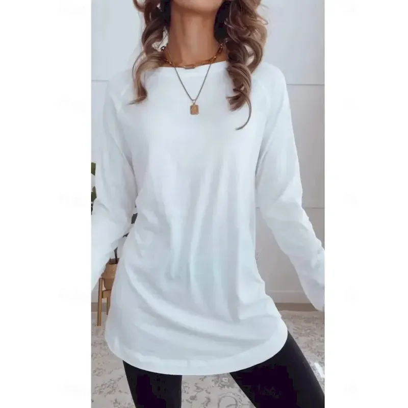 Women’s T Shirt Solid Color Daily Casual Long Sleeve Crew Neck Regular Tops Work Daily Patchwork Black White Blue Spring & Fall 2025