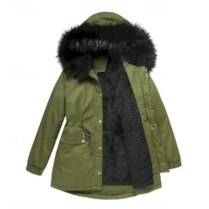 Women’s Winter Coat Windproof Warm Zipper Buttons Outdoor Solid Color Work Casual Single Breasted Hoodie Loose Fit Long Sleeve Outerwear Navy Red Gree
