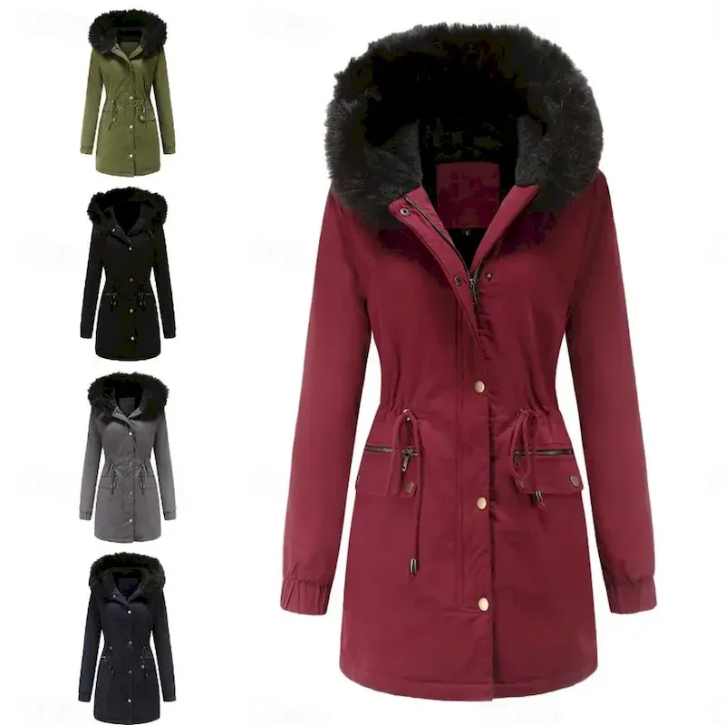 Womens-Winter-Coat-Windproof-Warm-Zipper-Buttons-Outdoor-Solid-Color-Work-Casual-Single-Breasted-Hoodie-Loose-Fit-Long-Sleeve-Outerwear-Navy-Red-Gree